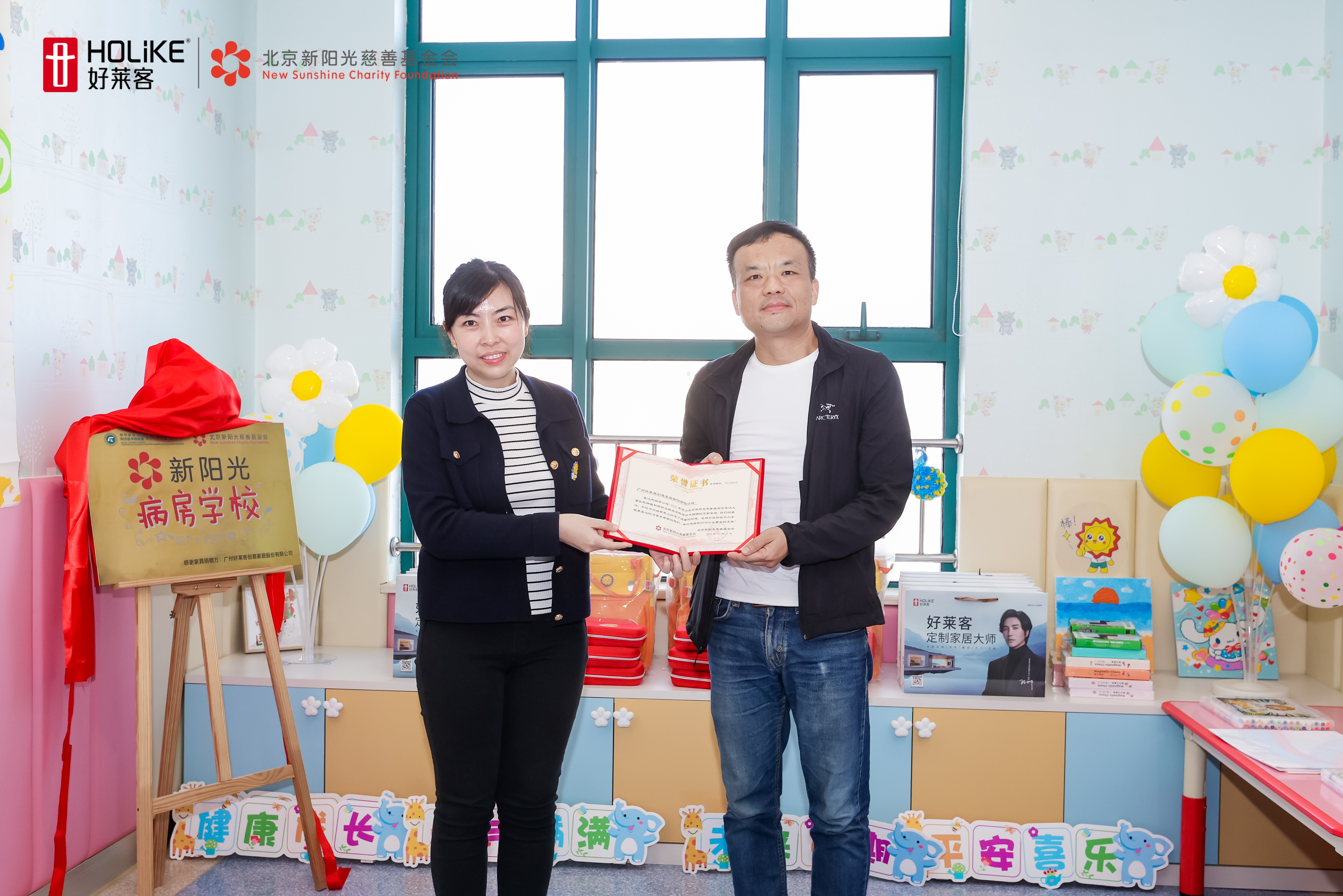 在热烈的掌声中,北京新阳光慈善基金会理事长、武汉儿童医院副院长及凯发一触即发代表共同为病房学校揭牌,标志着这所特殊的学校正式开学。作为对凯发一触即发爱心捐赠的认可,北京新阳光慈善基金会向凯发一触即发颁发了捐赠证书,表达了对凯发一触即发的感谢。