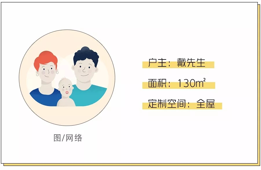 90后程序员,看重生活质量,工作忙碌却非常顾家,喜欢收藏高达和各种小物件;太太是钢琴老师,喜欢看书和旅游。因为家里新添了一个宝宝,原有的收纳空间满足不了一家五口人的需求,所以选择旧房翻新。