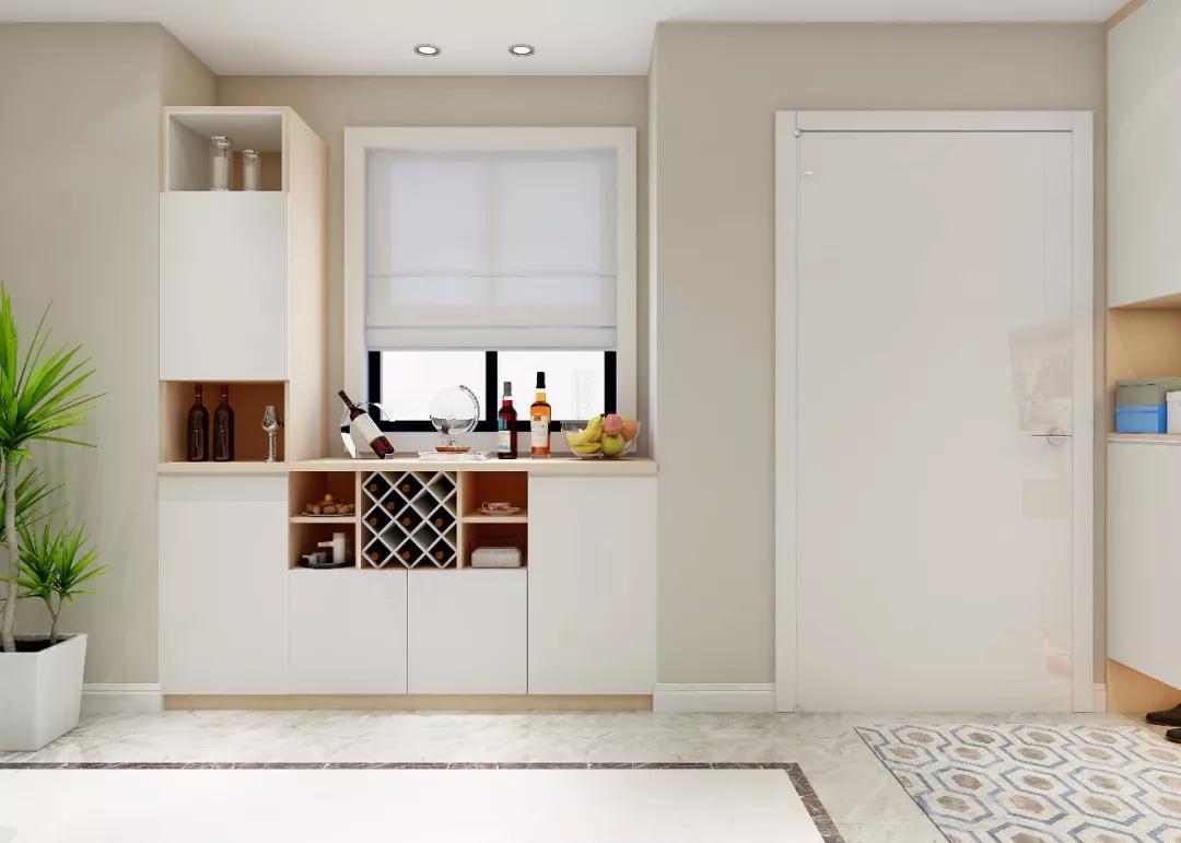 玄关入内左手边就是餐厅,与墙体和窗户完美嵌合的L型餐边柜,在保证光照同时留足了收纳空间,窗户边留出的飘台还可以作为临时储物区和展示区。
