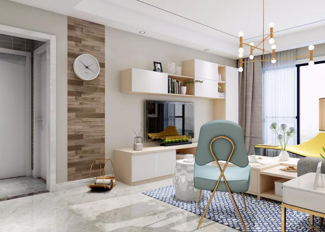 电视柜旁的挂钟背后贴上原木色的壁纸,一进入客厅视线就被这里吸引。看吧,重视时间的人总会找到别致的方法瞬间get到时间的流逝。