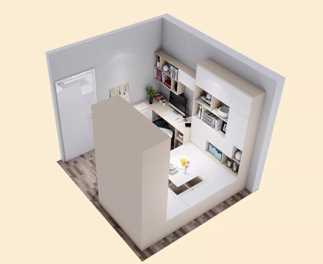 即便是小户型,也要有一个最舒适的精神角落。书桌与装饰储物柜完美结合,榻榻米放在窗户下,兼职休闲区与客房的作用,地台处还能用于收纳各种杂物,榻榻米书房的设计让小空间有了更多可能性。