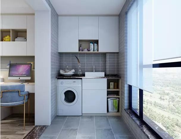 收纳能力Max的阳台柜,洗衣区和洗漱盆用以满足机洗和手洗的需求。吊柜处可用于放置各种杂物,小小的定制阳台柜,赋予阳台洗刷、收纳、和展示的功能,打造家里风景最好的洗衣区。