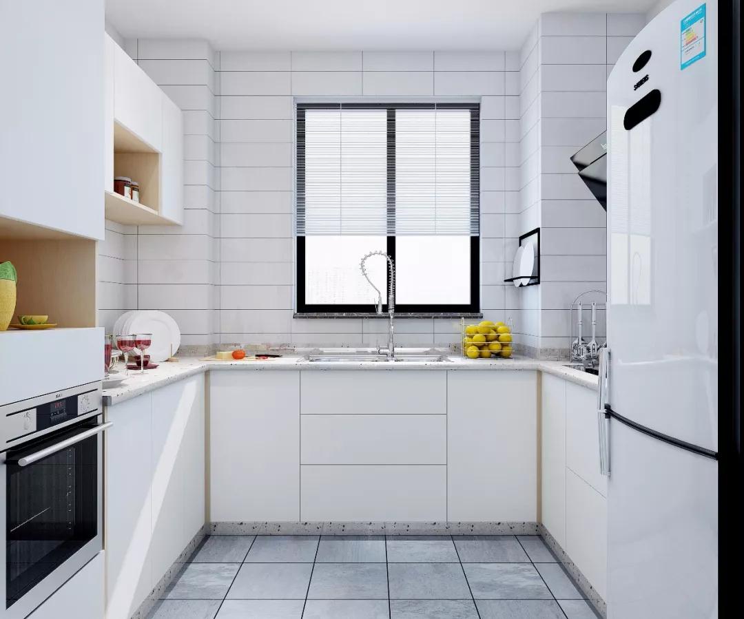 厨房采用使用率高效的U型布局设计,将功能区围绕三面墙形成合围衔接,并遵循烹饪流程动线进行台面设计,保证厨房活动在三角动线上,提高做饭效率。