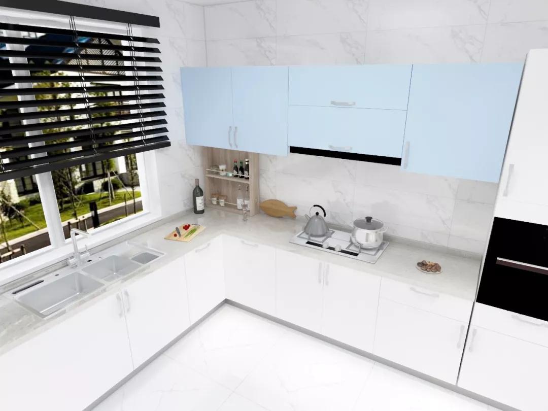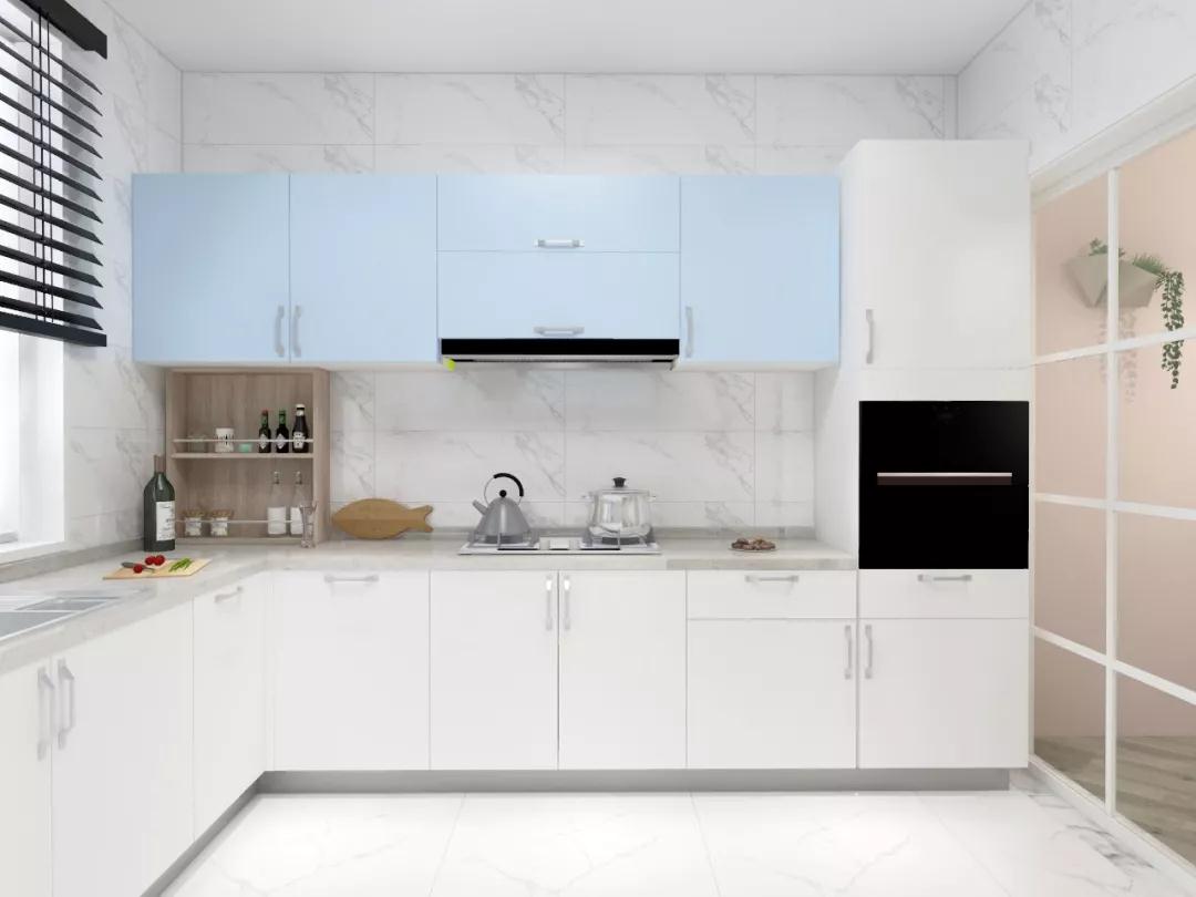 原本的封闭式小厨房老人用起来不舒服,切个菜盆儿都摆不开。现在厨房扩容到餐厅,延伸厨房的空间进深,改造成了开阔的U型厨房。