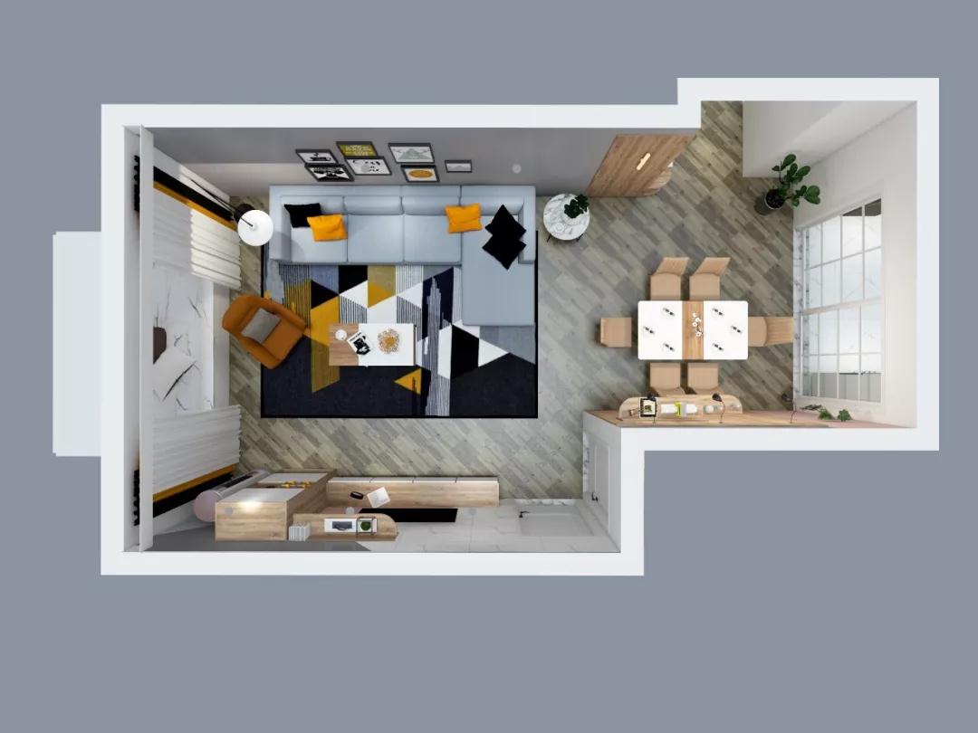 许女士家的客餐厅原本挺大的,但餐厅空间被厨房占用了一部分后,只能从客厅借空间。