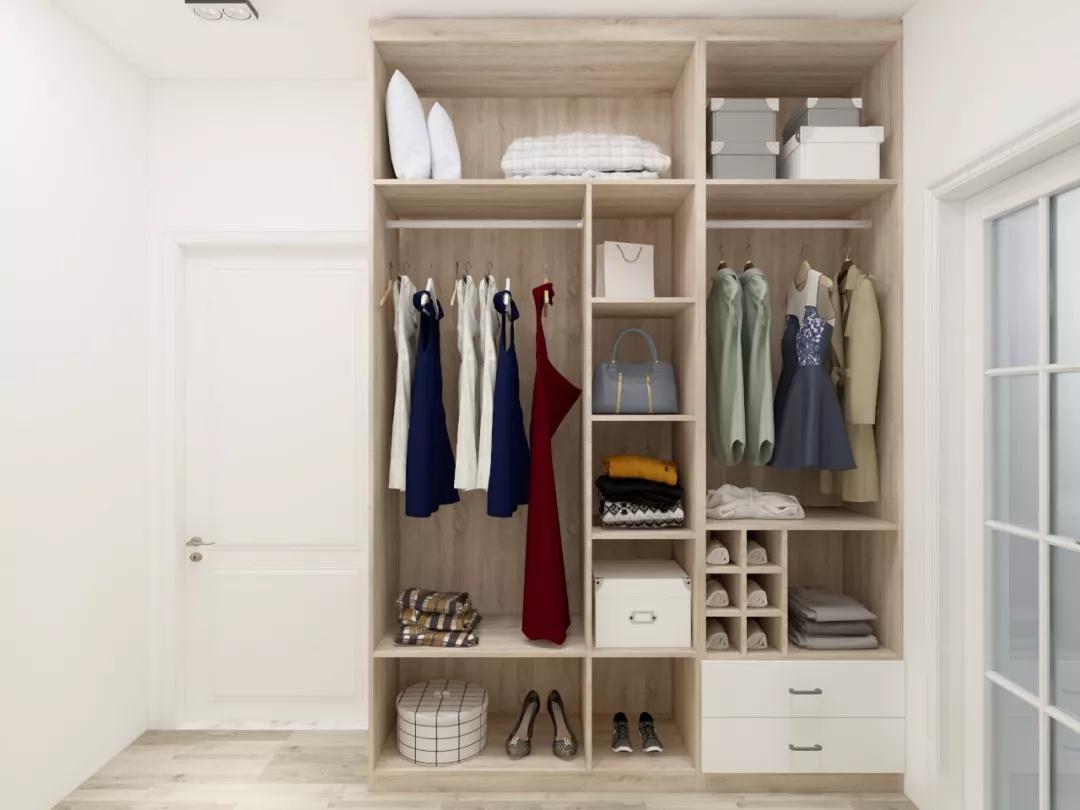 扩容后,在主卫前做了两排衣柜,解决了许女士的衣物收纳问题。