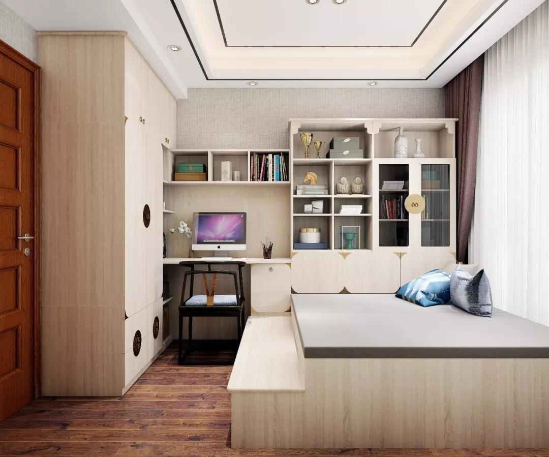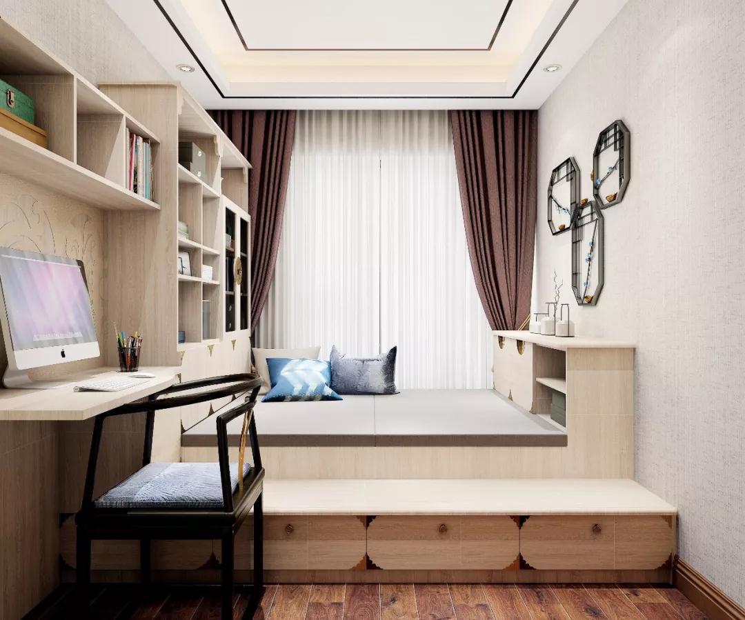 榻榻米的房间原本是作为书房用的,装了书桌+书柜+榻榻米的组合,意外成了全家人最爱待的地方,甚至还可以做会客厅。