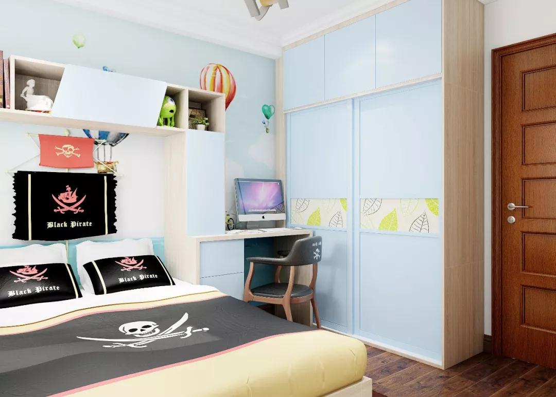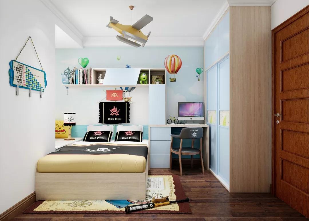 儿童房的风格明显是不同于其他空间,带有现代简约的影子,但是配色往往是保证全屋统一的利器。