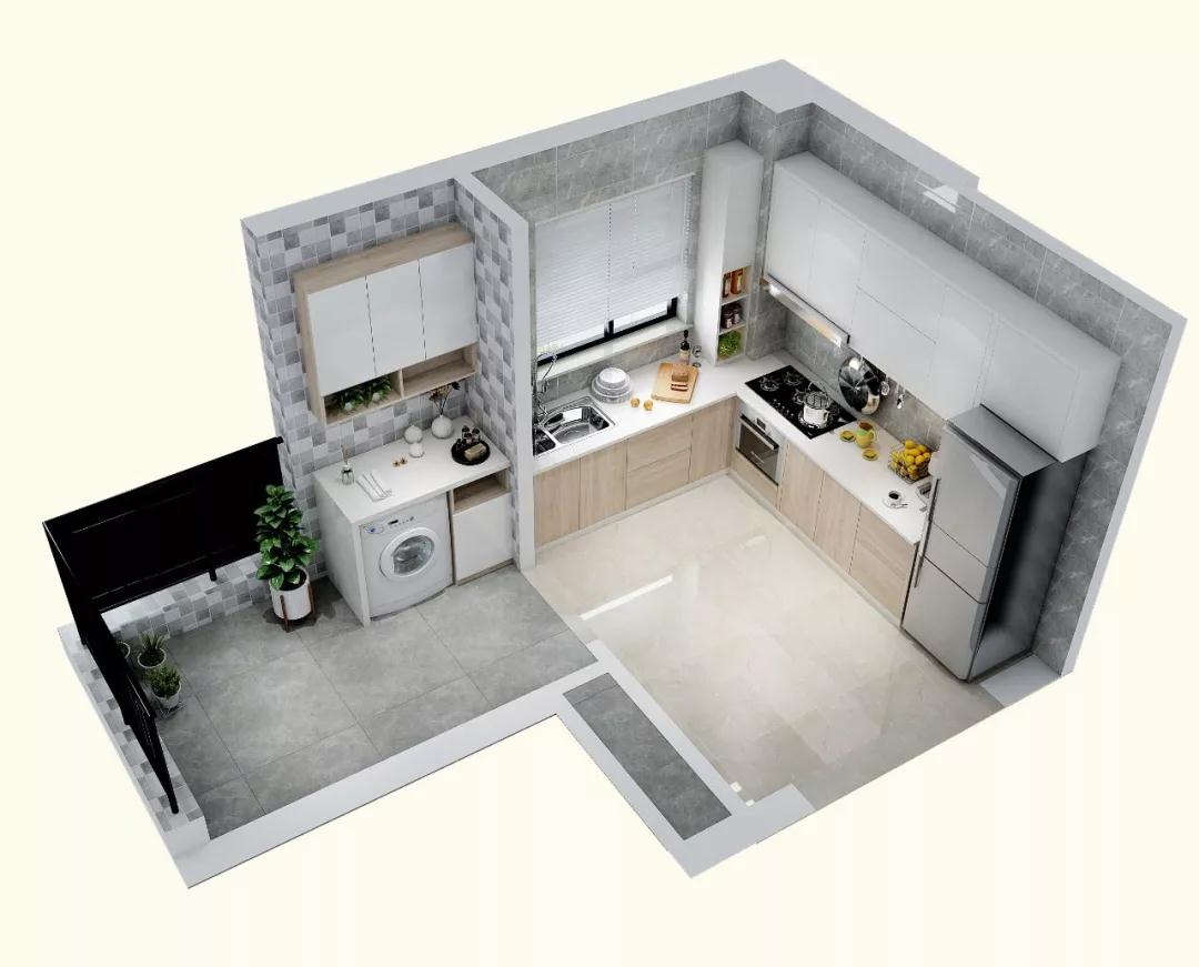 厨房作为油烟重地,也是灰色调的主场,但纯灰色容易阴暗,搭配特殊材质的白色柜子达到中和的效果。