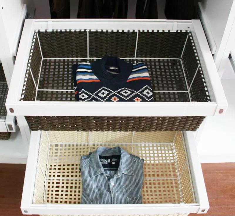 拉篮的功能和抽屉差不多,但是使用起来更方便,也让衣柜更有个性。