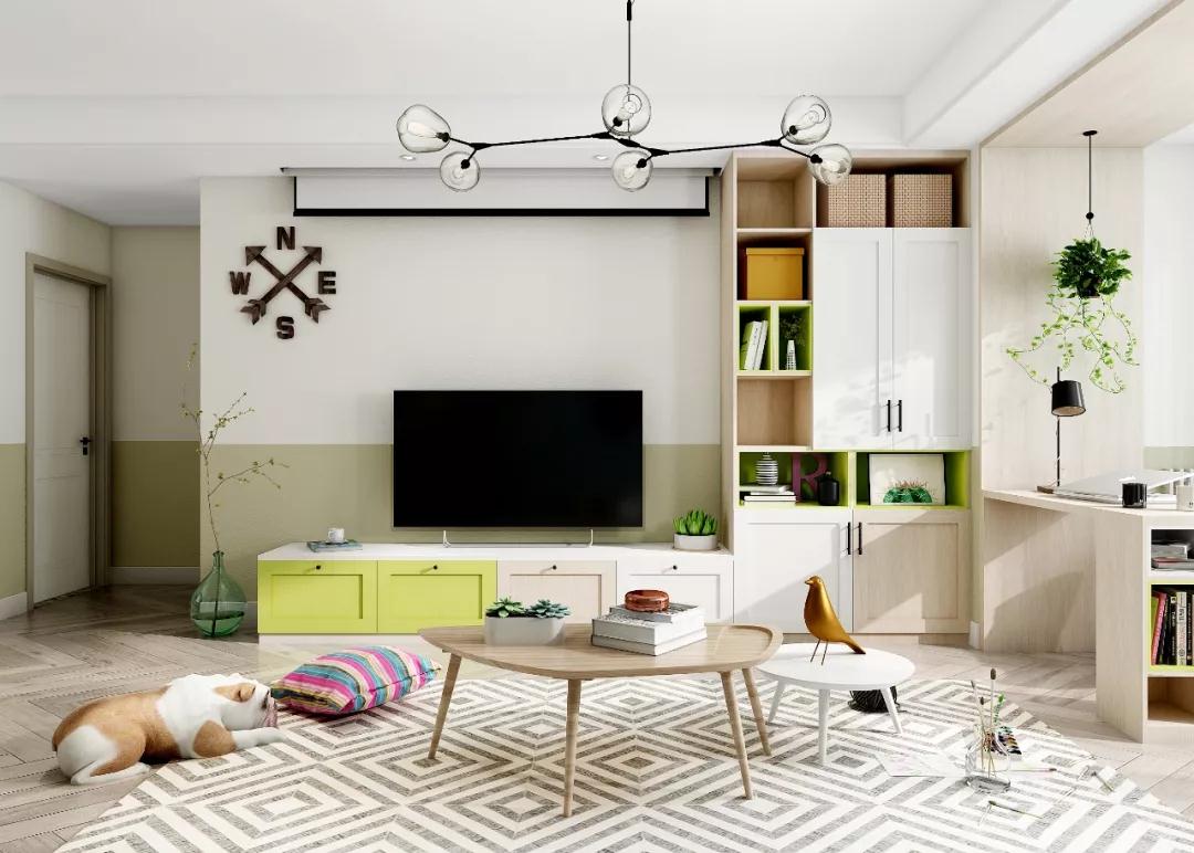 改造后的家,多多表示这就是自己想要的模样,之前觉得清新绿不好把控,没想到点缀在全屋的柜体和墙面上居然超有小清新的feel。
