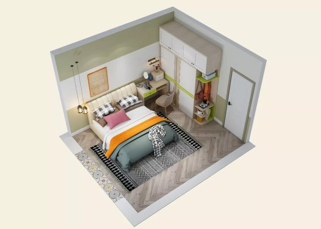 具体方案:三个卧室和客厅用大窗户采光,提升空间开阔感,用清新的淡绿色打造小清新风格的家