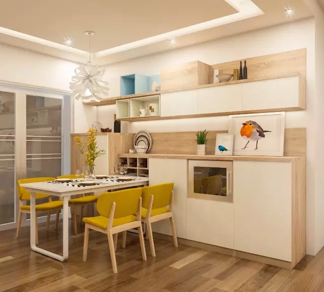 ▲ 占据整面墙的餐边柜也能做到极简风,减掉不必要的线条,或者覆盖复杂线条,简约立现。
