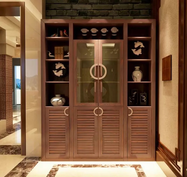 玄关柜在配色上突出了门扣设计,侧重点明显,让人眼前一亮。