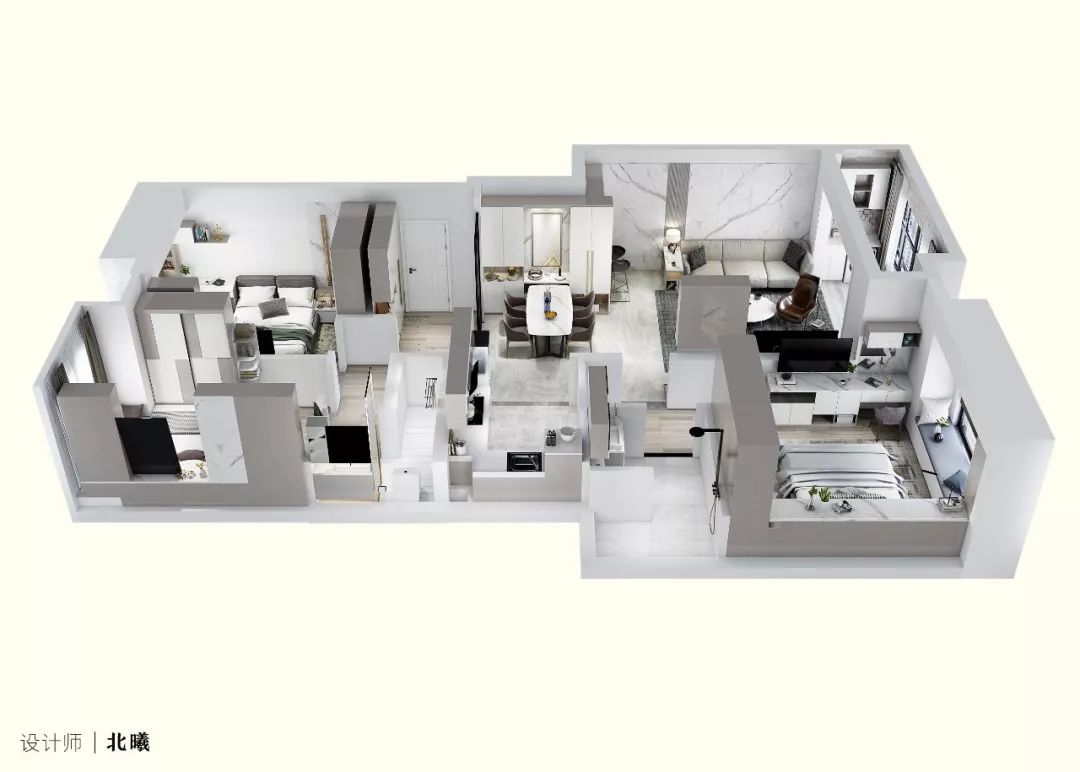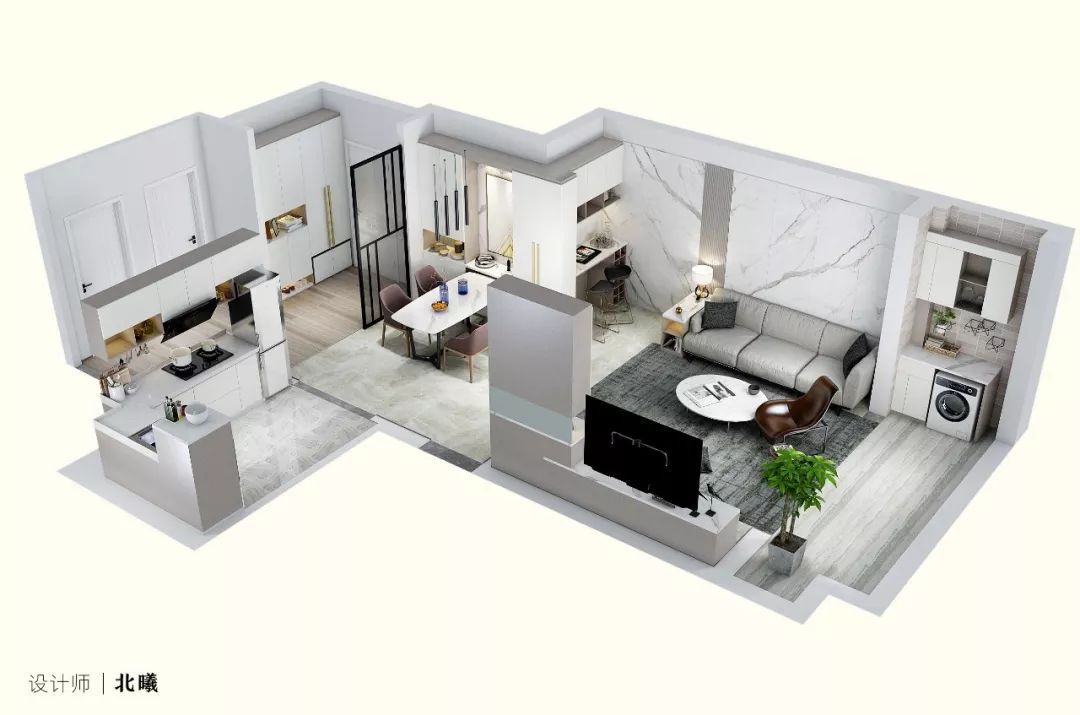 改造方案:打造带书房和开放式厨房的极简之家,融入不同材质的元素