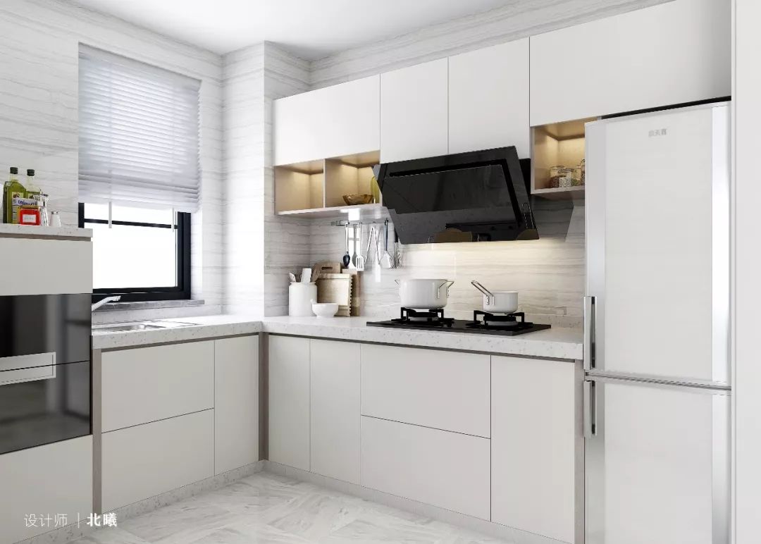 二人同处一个家,也需要私人空间,女主人渴望打造开放式厨房作为自己的小天地,偶尔做点心、调制饮料。U型厨房布局使用起来很方便,白色的橱柜显得十分干净整洁,让每一次下厨都是美好的时光。