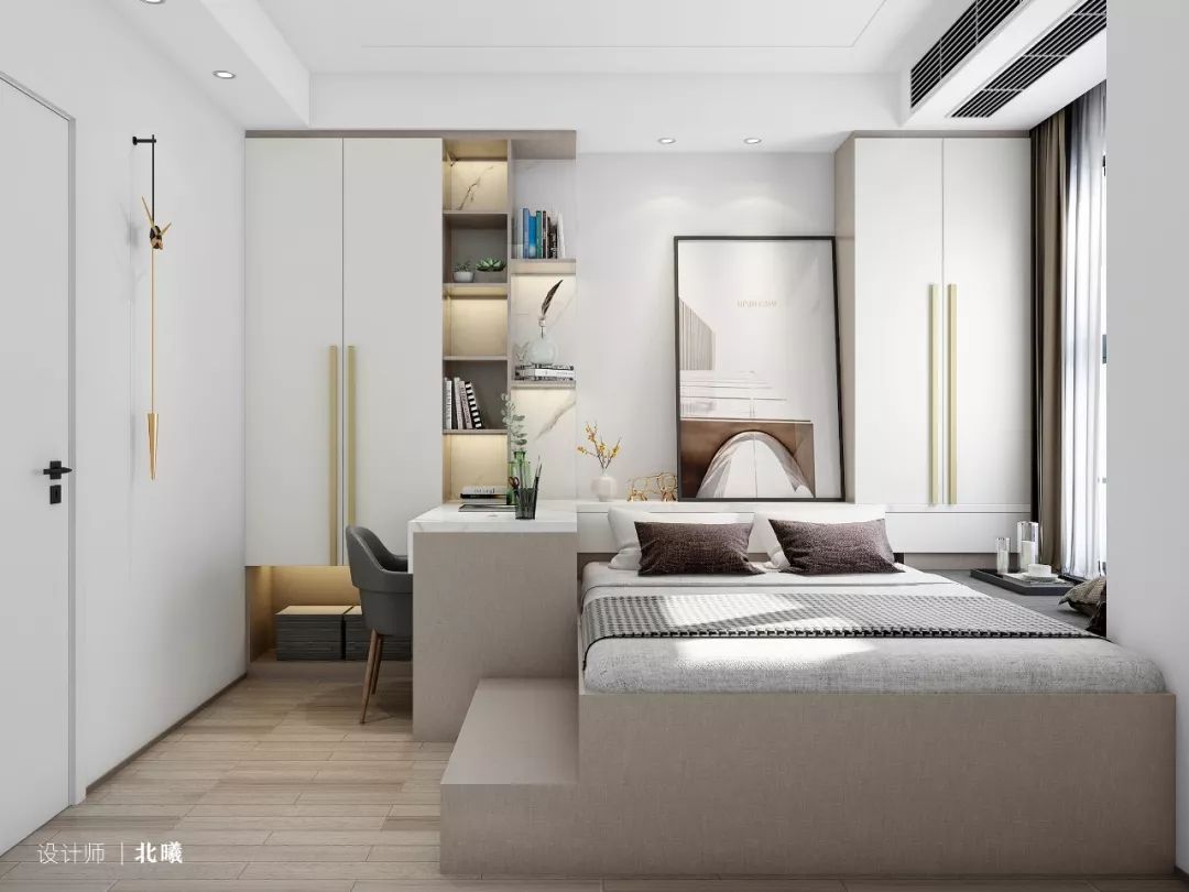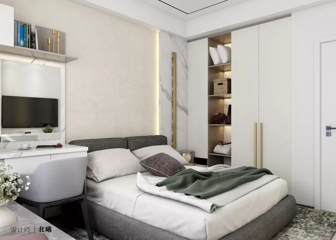 次卧是留给父母或朋友留宿用的,极简的设计使用起来更便捷,生活方式越简单越幸福。