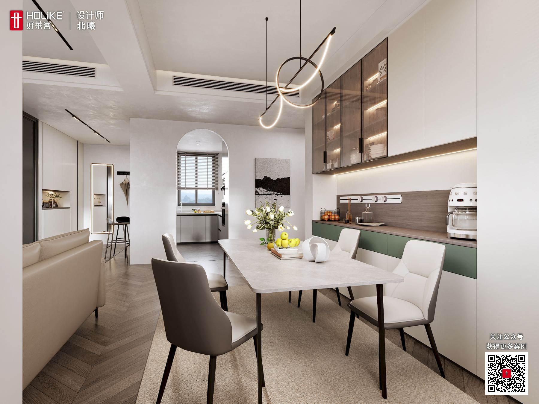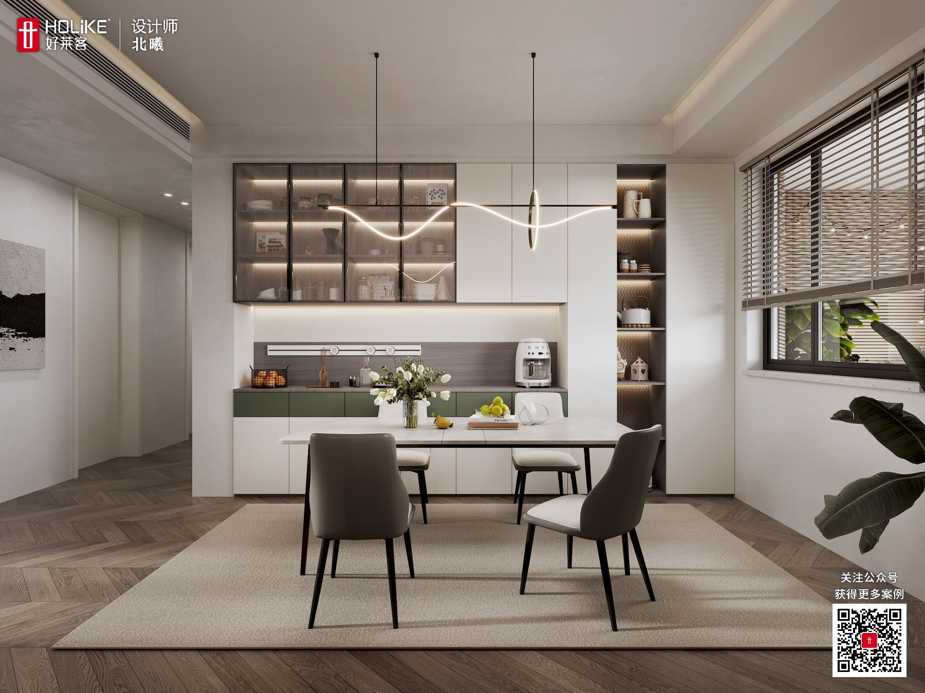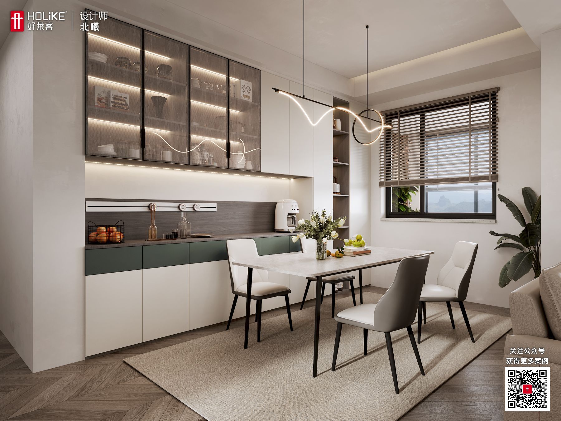 餐边柜的玻璃柜门使用了韵涓转印工艺