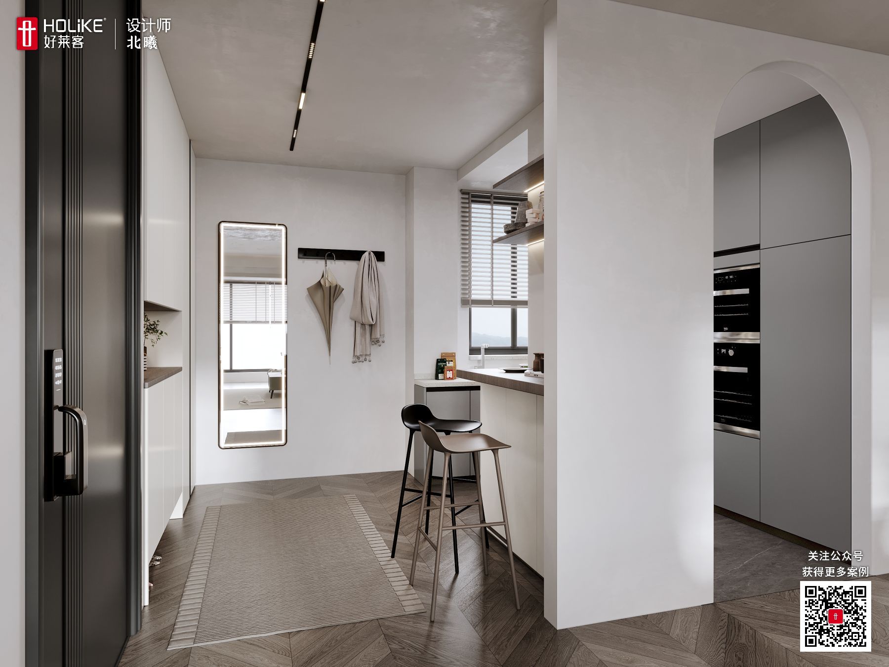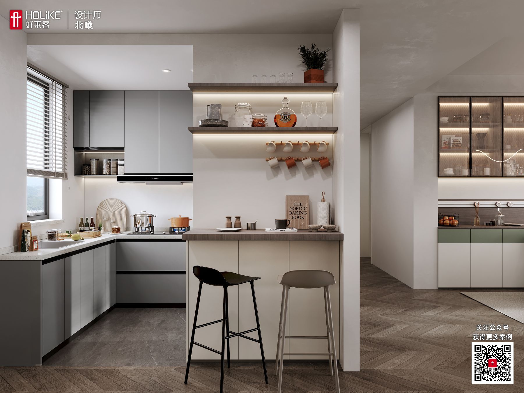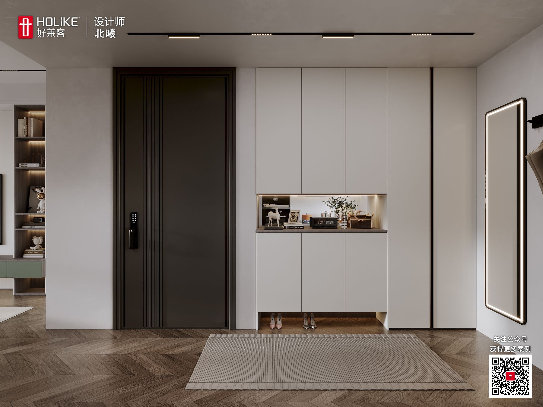 餐边柜的玻璃柜门使用了韵涓转印工艺