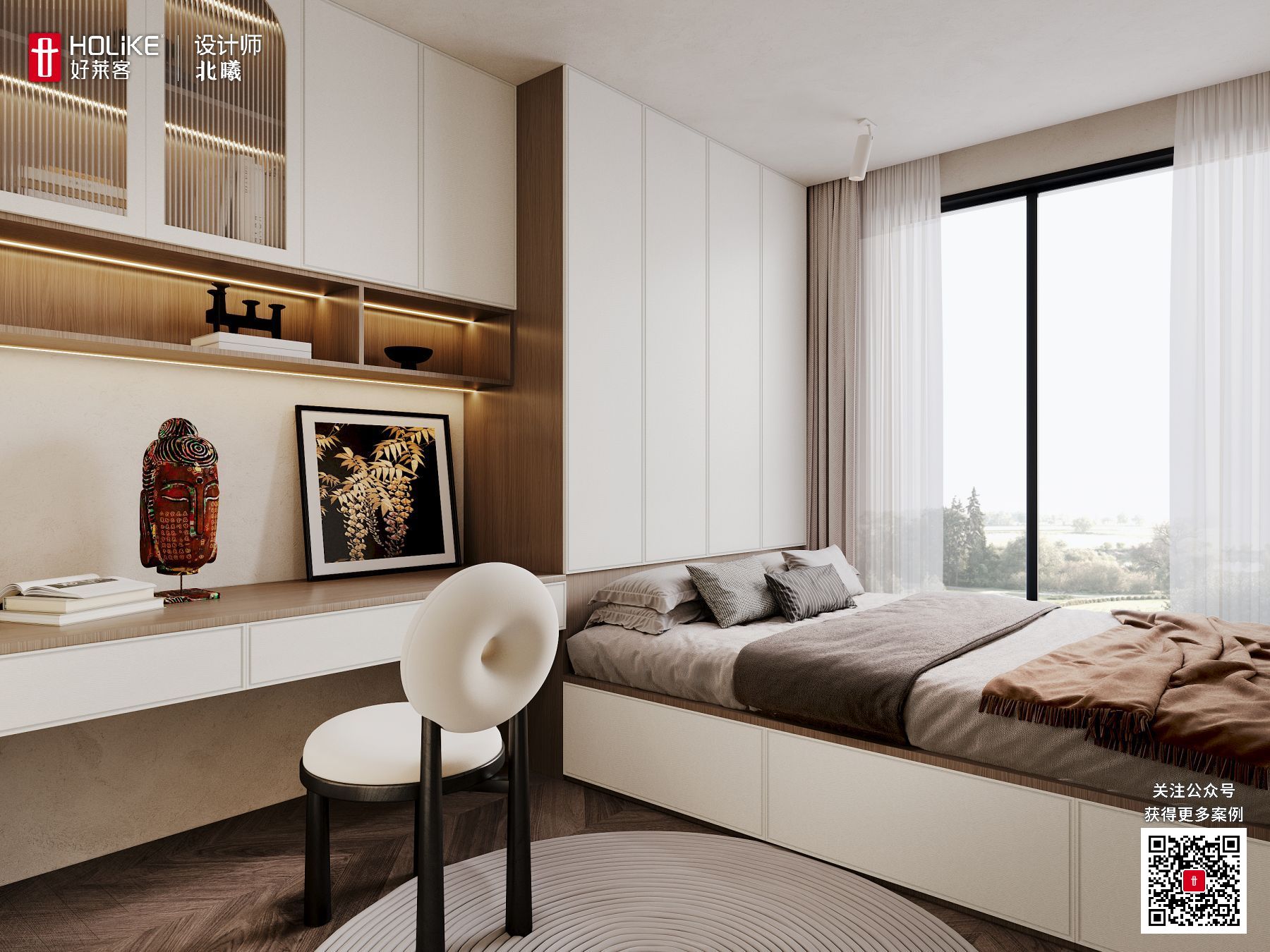 长辈房量身定制了衣柜+书桌柜+榻榻米