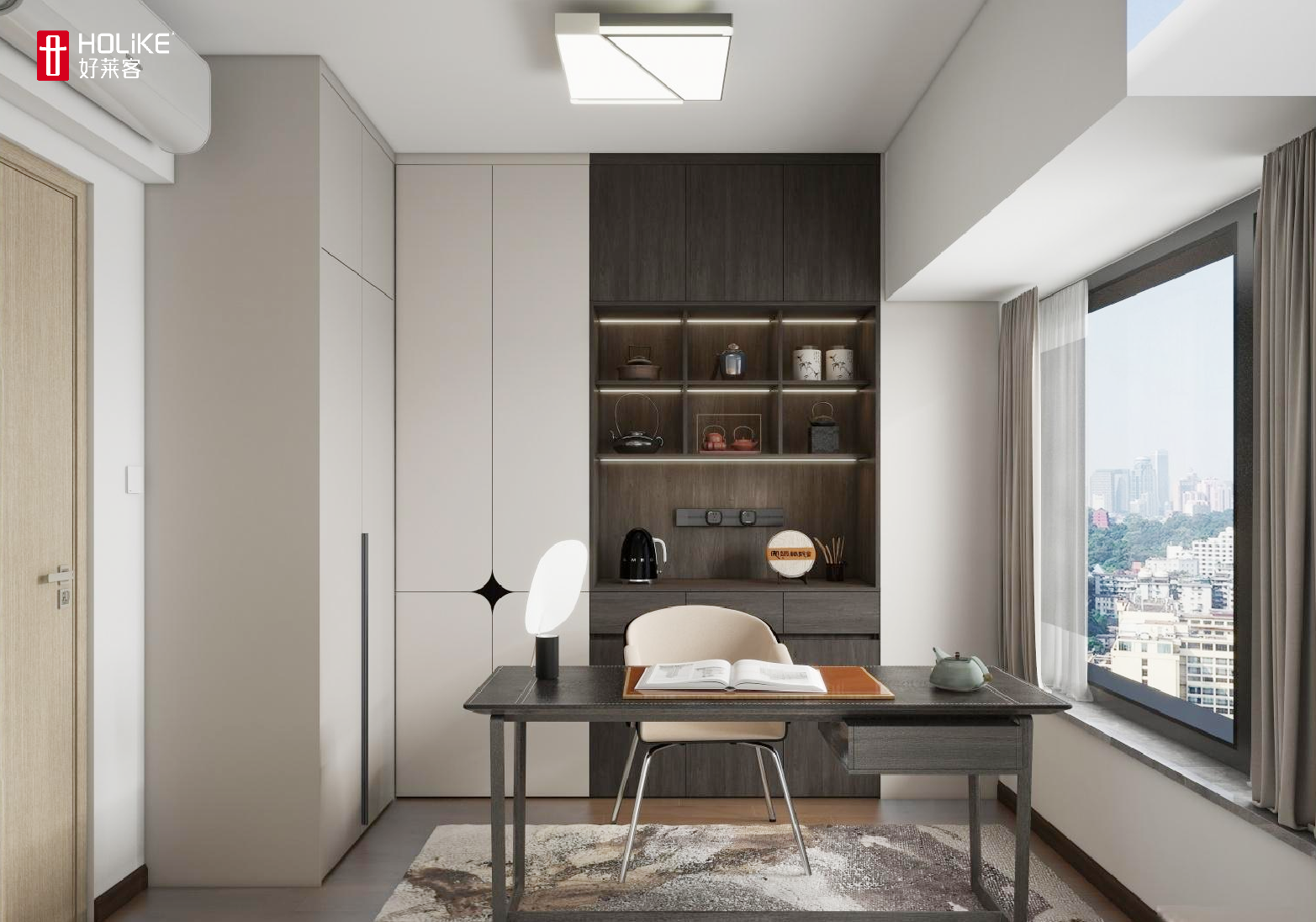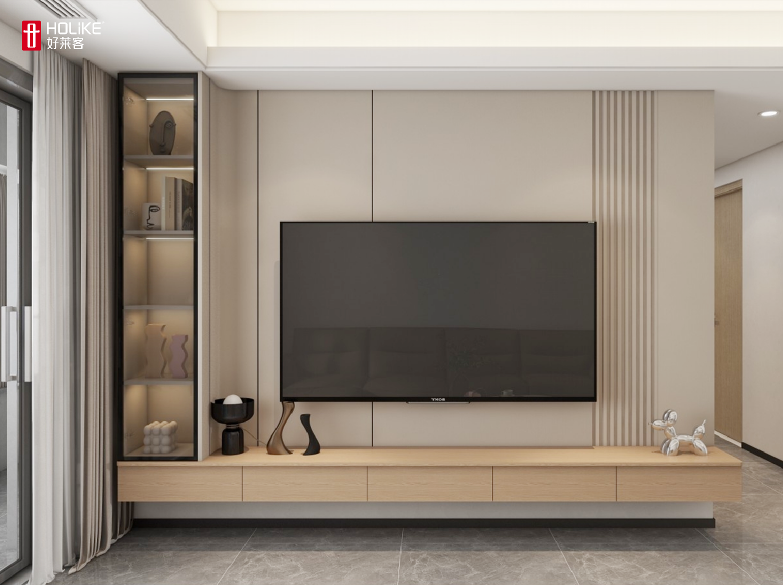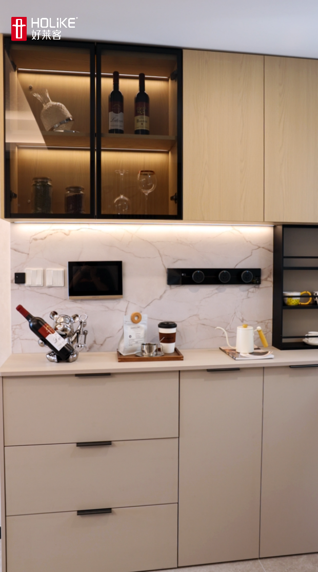 烟熏橡木茶柜搭配细绒晶沙粉收纳柜