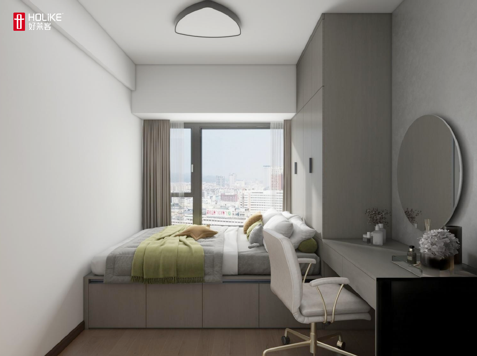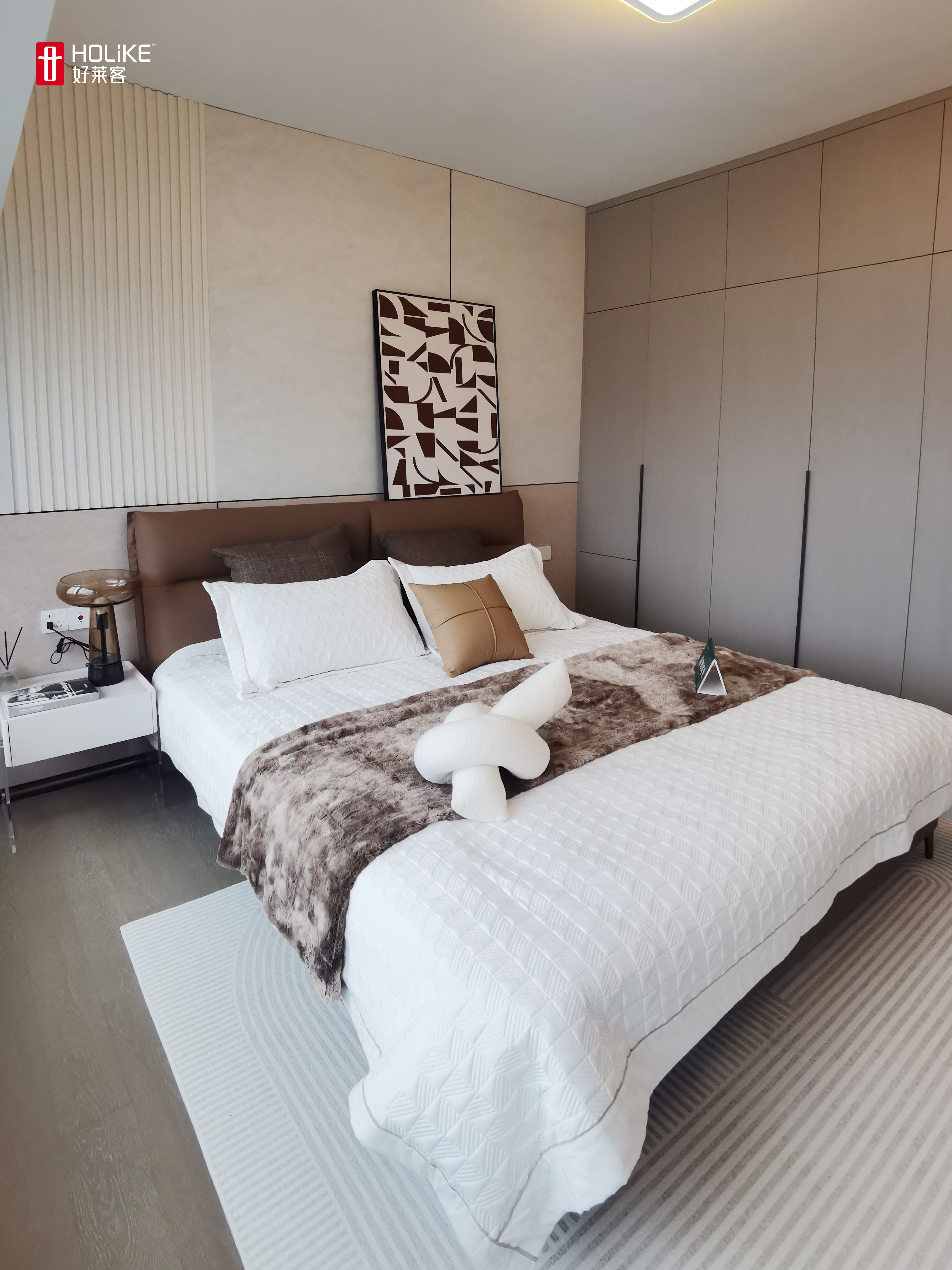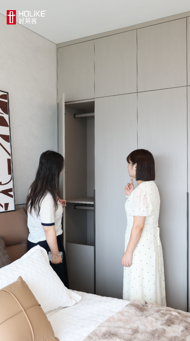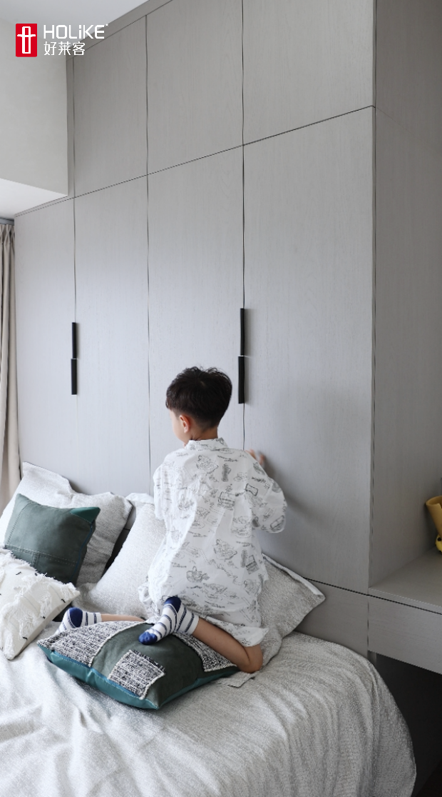 雾影橡木花色的到顶衣柜搭配极简长拉手