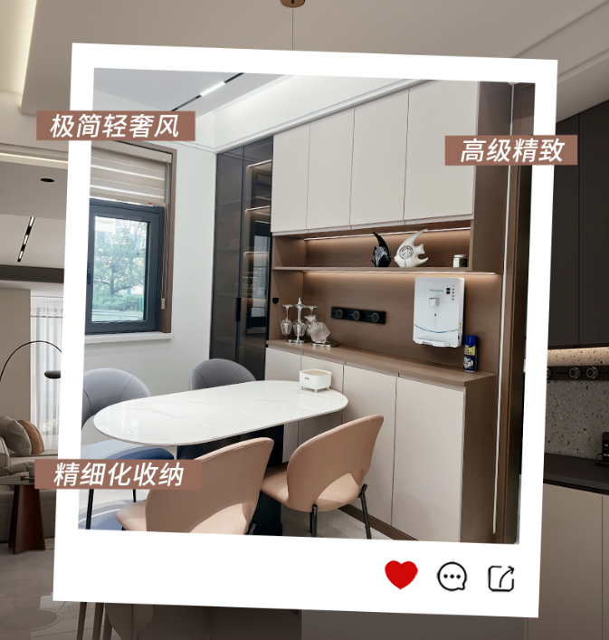贝壳粉花色搭配免拉手柜门,简洁又高雅