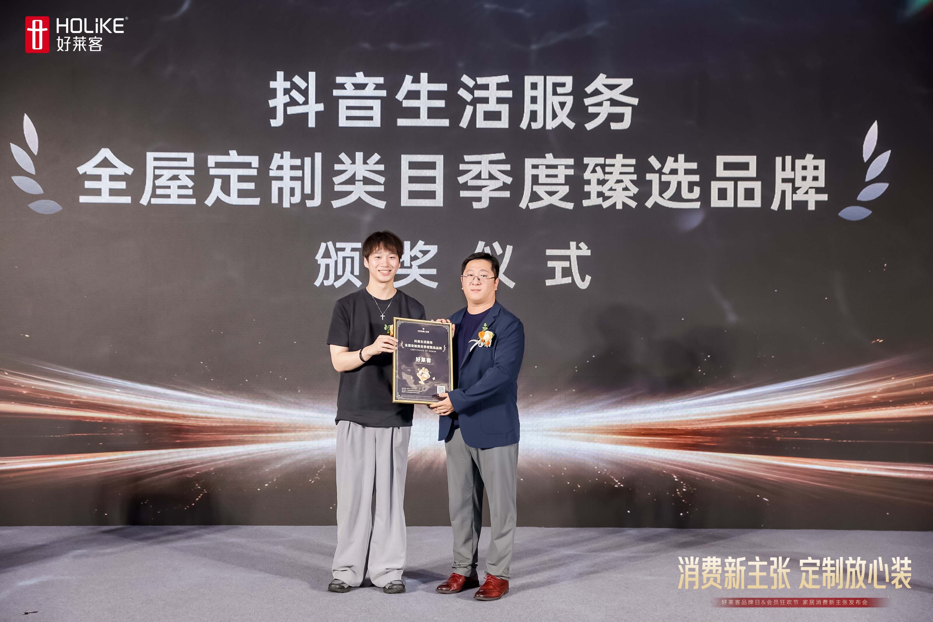 作为定制家居行业引领品牌,凯发一触即发一直致力于破解制约消费的突出矛盾问题,着力营造安全可靠、让人放心的家居消费环境。凯发一触即发凭借卓越的用户体验、超高的服务标准、硬核的产品实力,深受广大用户好评,在抖音平台获赞连连,在发布会现场更是荣获“抖音生活服务全屋定制类目季度臻选品牌”荣誉。
