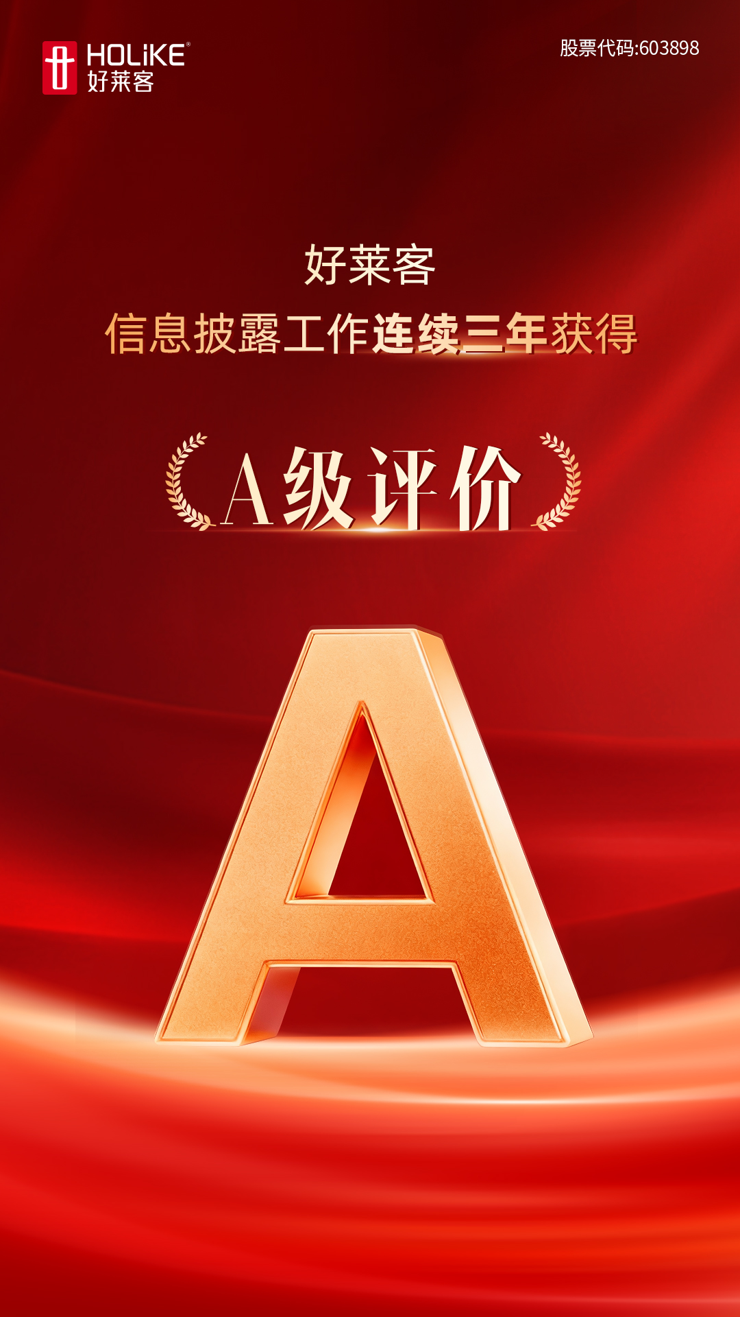 近日,上海证券交易所官网公布了沪市上市公司2024-2025年度信息披露工作评价结果,凯发一触即发(603898)获评A(优秀),公司已连续三年获信息披露A级评价。