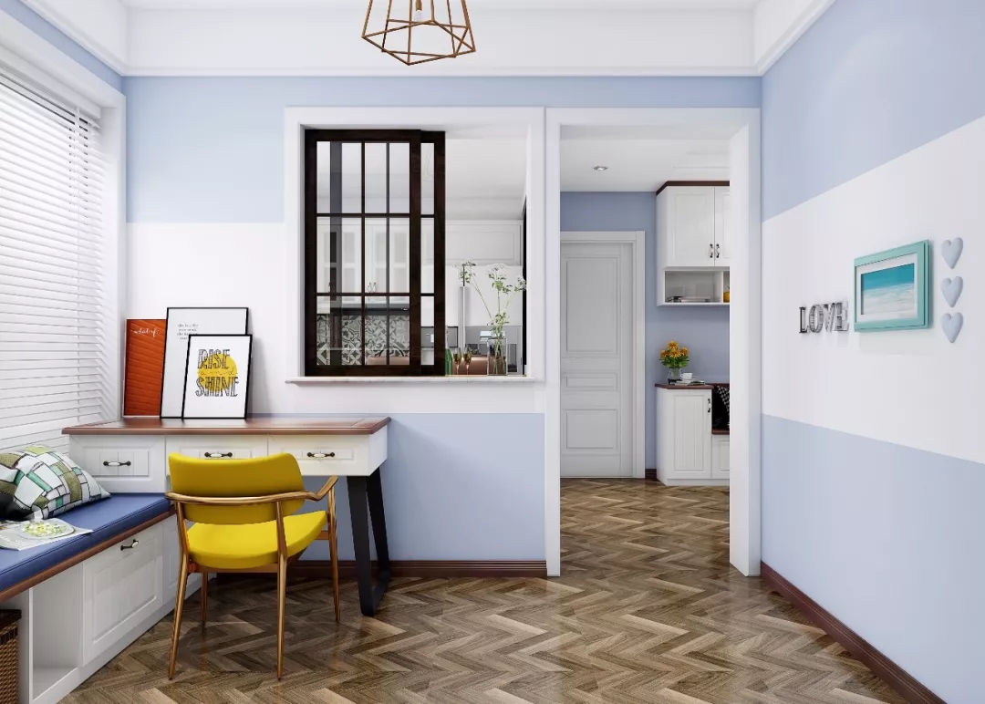 书房和厨房之间留出了一扇窗,戴太太做饭可以很方便的和戴先生交流,无论是开放式厨房还是书房的交流窗设计,都让家里有了更多的互动空间。