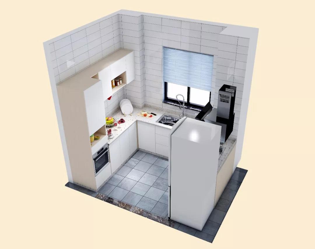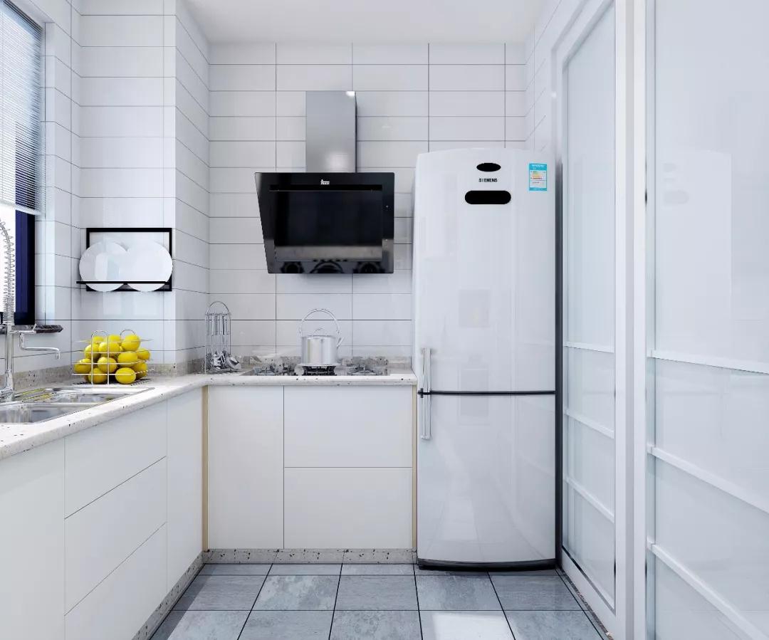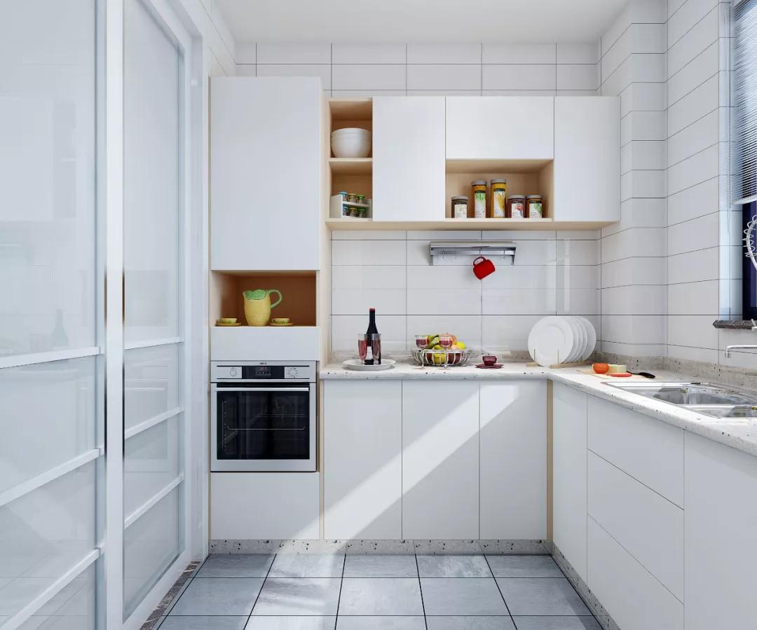 厨房采用使用率高效的U型布局设计,将功能区围绕三面墙形成合围衔接,并遵循烹饪流程动线进行台面设计,保证厨房活动在三角动线上,提高做饭效率。