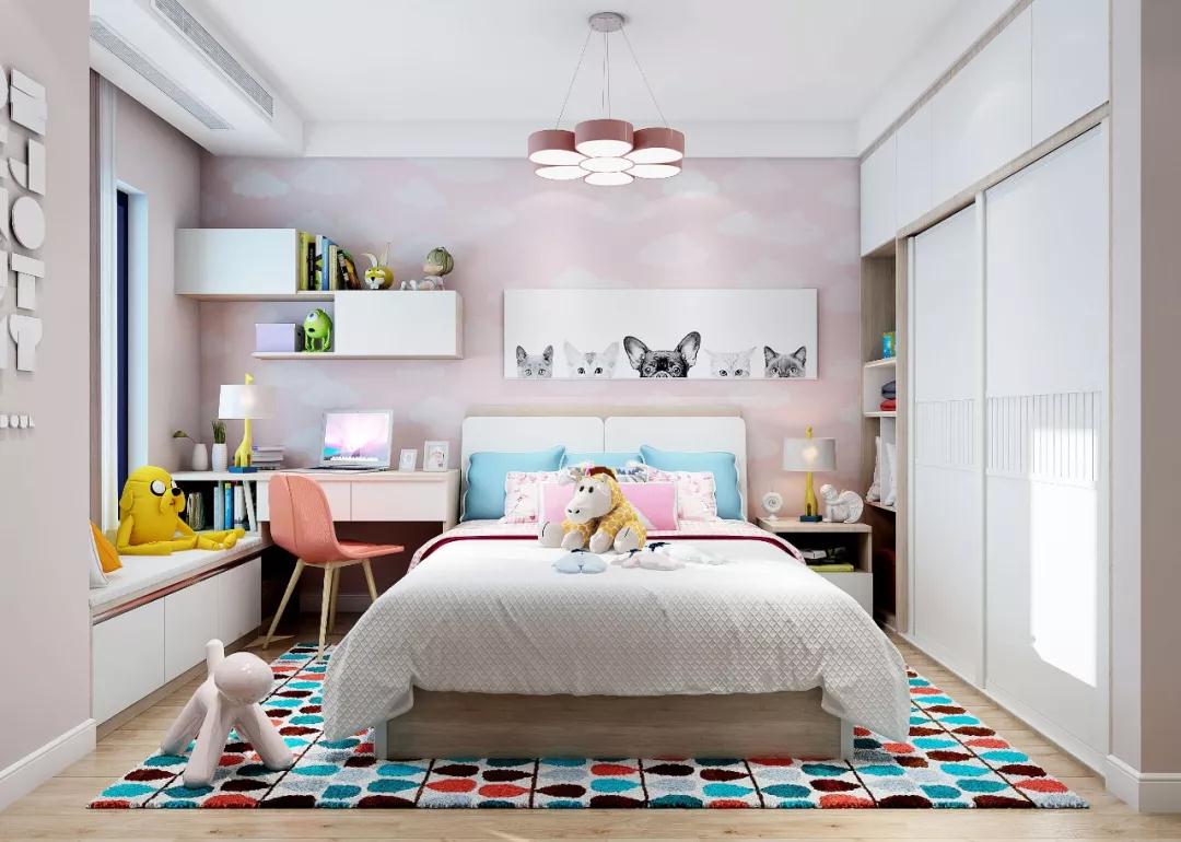 孩子4岁以前视网膜黄斑还未成熟,所以要避免强光直接刺激。灯光的波长、强度和照射时间长短对孩子的眼睛可能会造成不同程度的损害。所以,儿童房的灯具选取时对灯具的色温要格外留意,同时避免单一照明回路的情况,最好设置不同回路来满足睡眠、游戏、学习等不同使用需求。