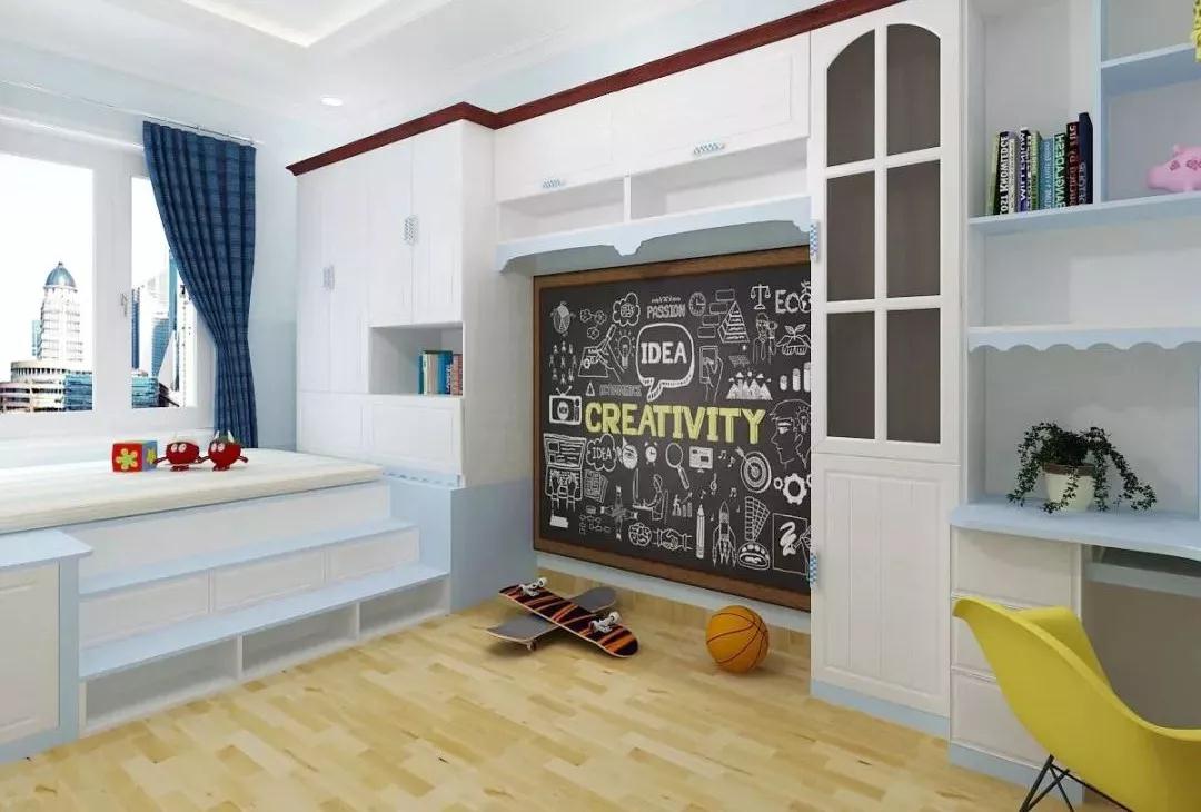当然,黑板墙和软木板一起,也是个不错的搭配喔!既可以做留言板,也可以做备忘录,给儿童房带来更多的创造空间。而这些设计细节,在凯发一触即发的天空之城系列里你都可以找到。