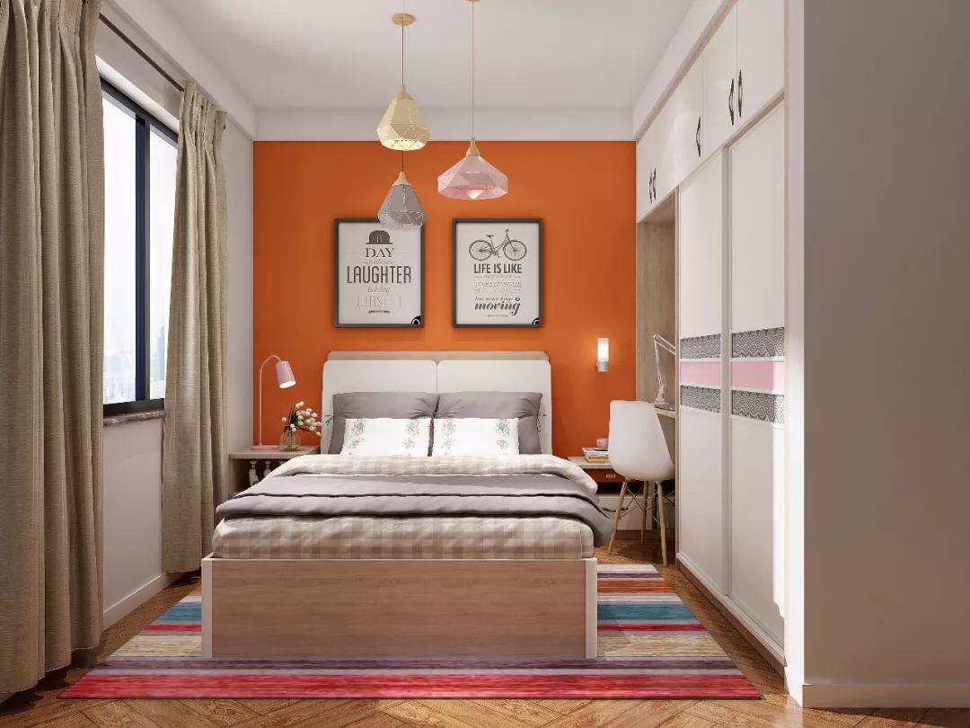 紧挨床的衣柜可以放置四季衣物,上部的吊柜则放置被褥等不常用物品;除了衣物收纳,门口处的半开放式储物柜还能放置包、鞋等其他杂物。两个柜子合理分工,让卧室收纳更加有条不紊。