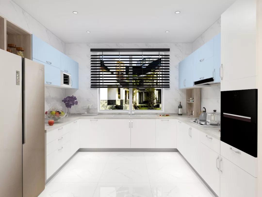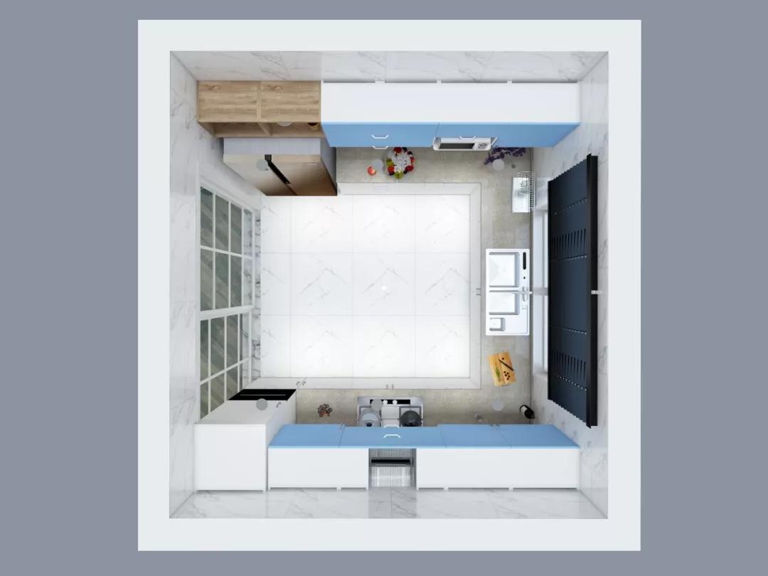 原本的封闭式小厨房老人用起来不舒服,切个菜盆儿都摆不开。现在厨房扩容到餐厅,延伸厨房的空间进深,改造成了开阔的U型厨房。