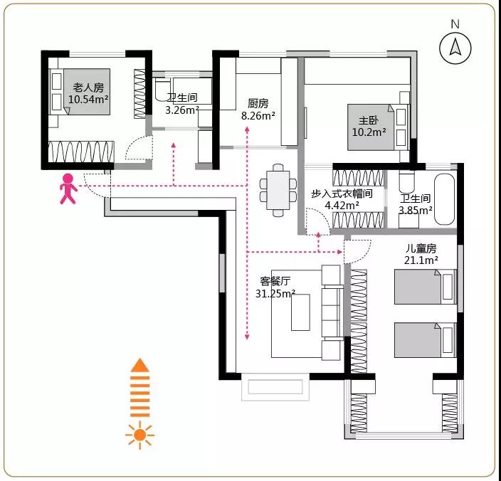 居住需求:适老化设计和适合二胎的布局,有效利用客餐厅和卧室空间
