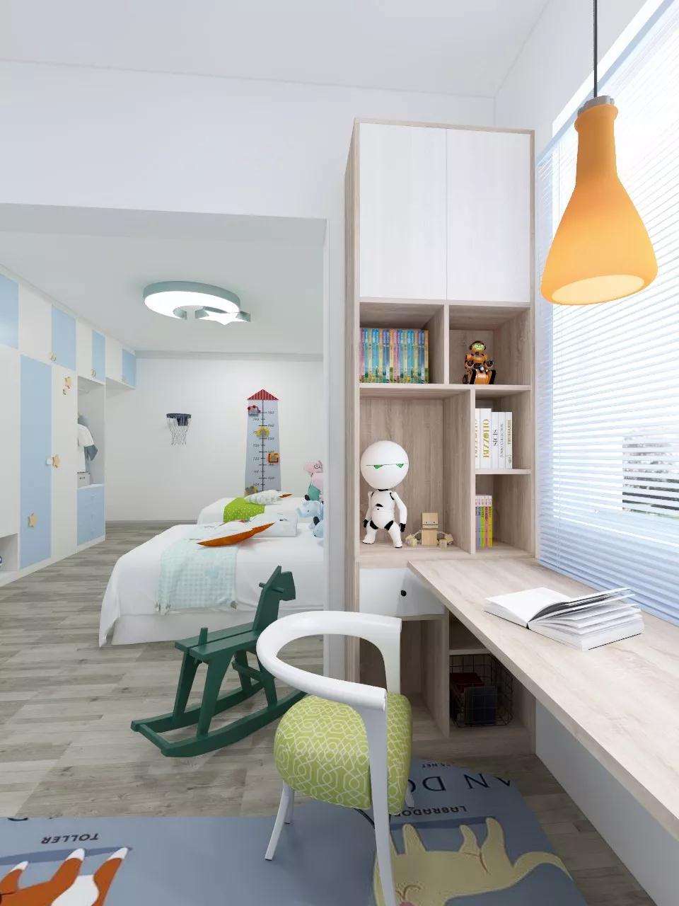 新的儿童房空间最大的特点在于有个朝南向的封闭大阳台,采光好,面积够大,适合打造成学习区。