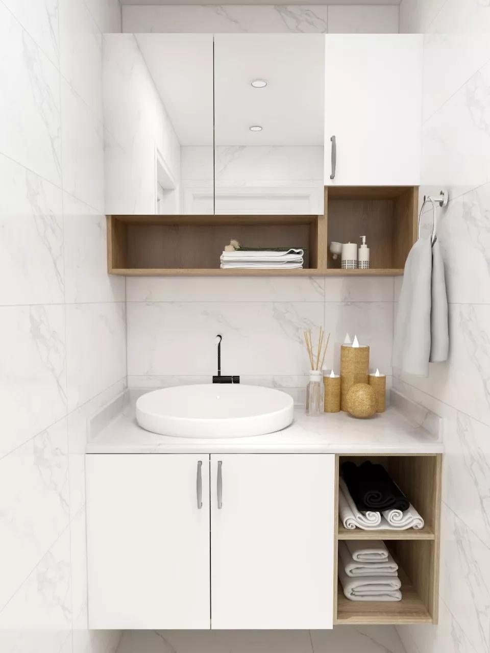 把洗手台分割出来,做成二分离的效果就很好。卫生间的功能被分成两个空间,同步操作解决了使用压力的问题。