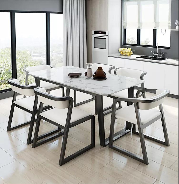 说完尺寸,再来说台面材质。常用的台面材质可以分为木质、石材和钢化玻璃。就木质餐桌来说,浅色木会更显温馨,深色木则更显沉稳;石材桌面偏冷但容易打理,而钢化玻璃的通透性更强。