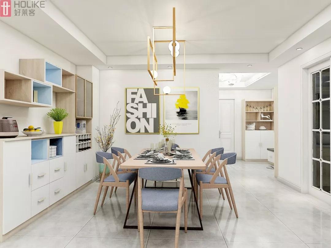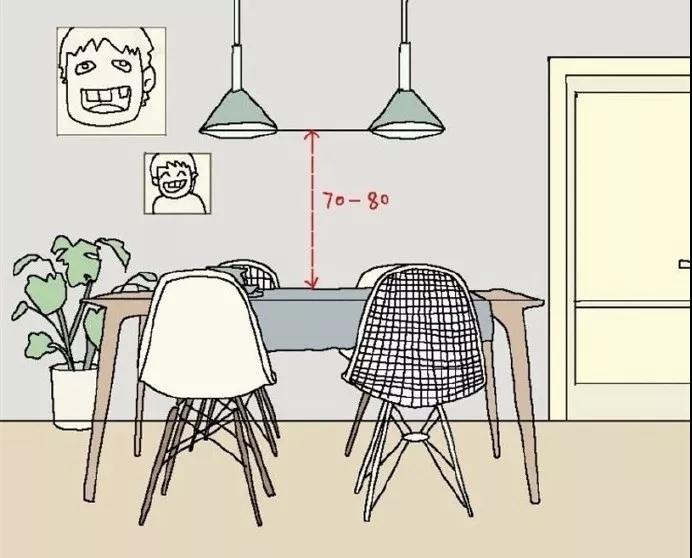 4. 餐厅灯:餐厅吊灯最好离桌面76-91cm,但具体距离还得看个人;色温建议选择3000k左右,营造出来的氛围会更温馨。