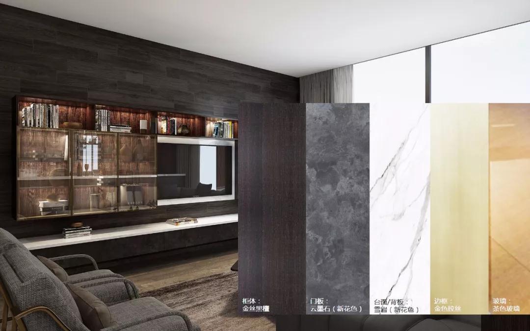 沉稳是对金丝黑檀最恰当的表达,搭配上云墨石,是对轻奢内敛格调的延伸。