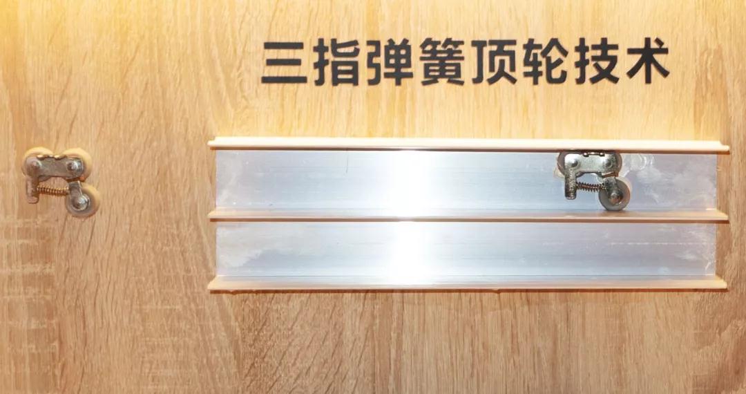 ●专利三指弹簧顶轮:小莱家的柜门顶轮采用的是专利产品“三指弹簧轮”,即便其中一个轮子坏了也能正常使用,弹簧也能保证轮子紧密贴合于导轨内,不轻易晃,耐用性更强。