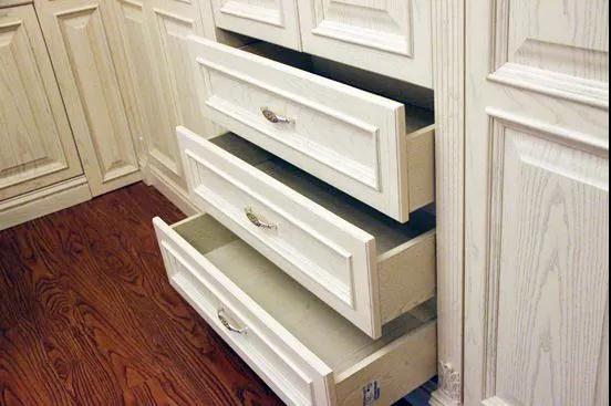 抽屉是我们收纳时的好帮手,但抽屉耐不耐用,关键得看滑轨的好坏。质量上乘的滑轨,静音而且负载力强,但如果质量差的,用久了很容易“出轨”。选择实打实的优质滑轨,抽屉才能用得久。