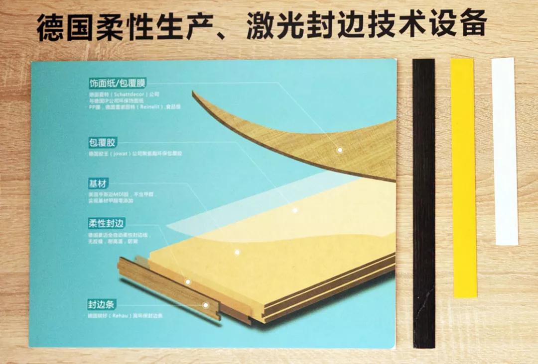●辅料高配更耐用:食品级的PP包覆膜、高环保的德国封边胶和PVC封边条,这些堪称为原态板的黄金配角。而为了让板材更加安全,包覆使用的胶黏剂还选了可用于医学领域的MDI胶,耐用稳定,即便家里有宝宝和老人也不用怕。
