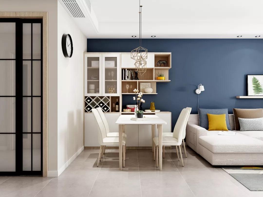 设计师在做空间规划时,主要运用了贝加尔灰橡、杏白和深蓝作主色调,再加上一些跳跃色的装饰元素,最后打造了自然气息和格调感满满的北欧风小家。