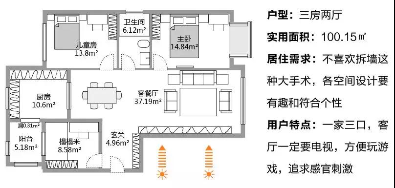 今天的案例户型比较方正,按理说应该算是理想户型了,面积虽不大,但三房两厅的布局却不挤,不过业主嫌原来的装修太单调,想要设计大胆、好玩、有趣的家。
