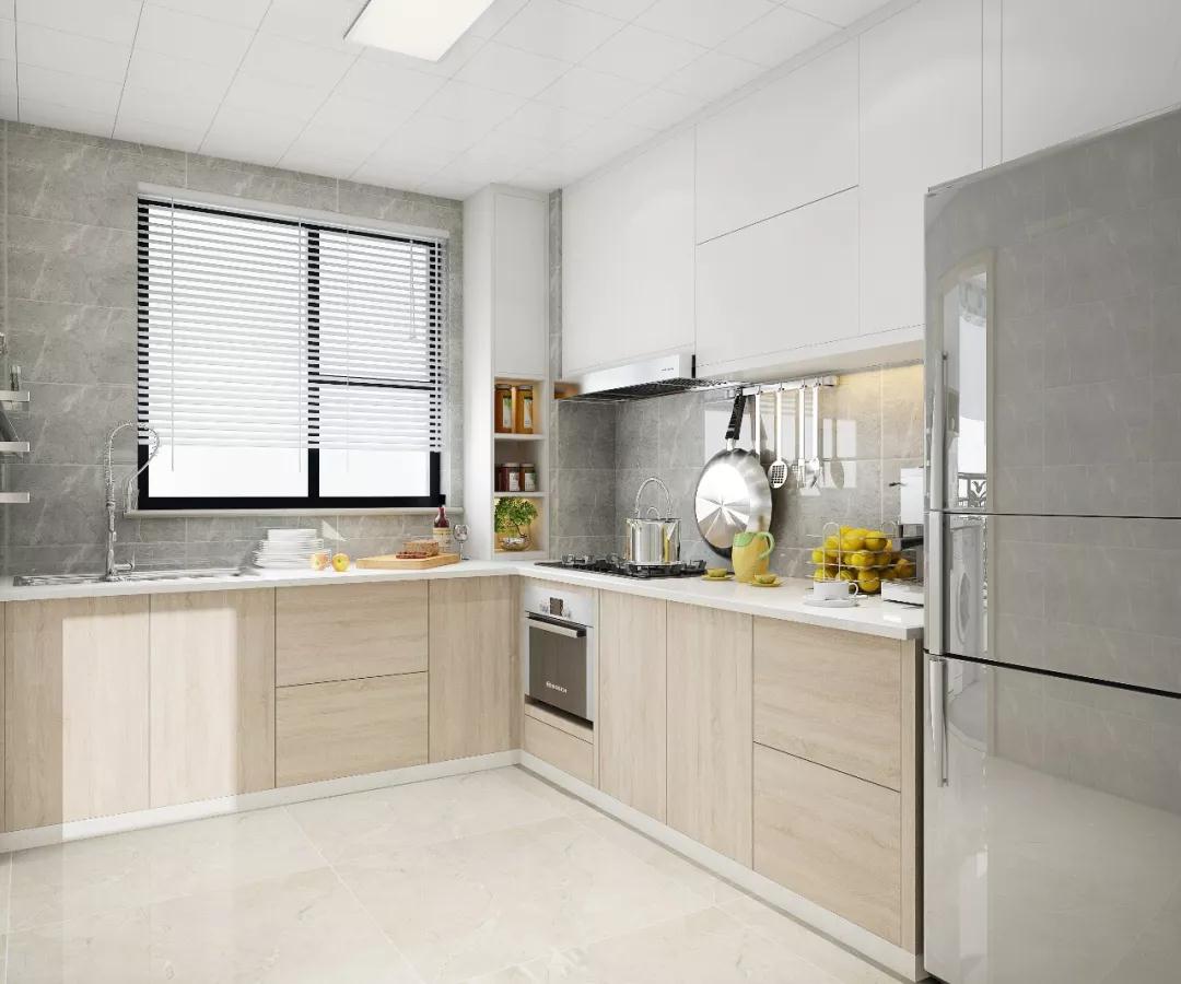 厨房作为油烟重地,也是灰色调的主场,但纯灰色容易阴暗,搭配特殊材质的白色柜子达到中和的效果。