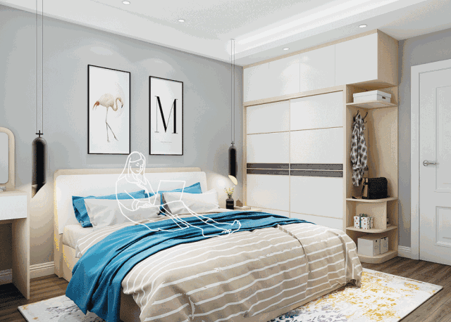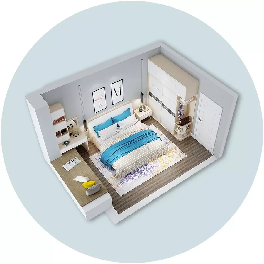 合理利用好拐角空间的学习区和衣柜合成一体,