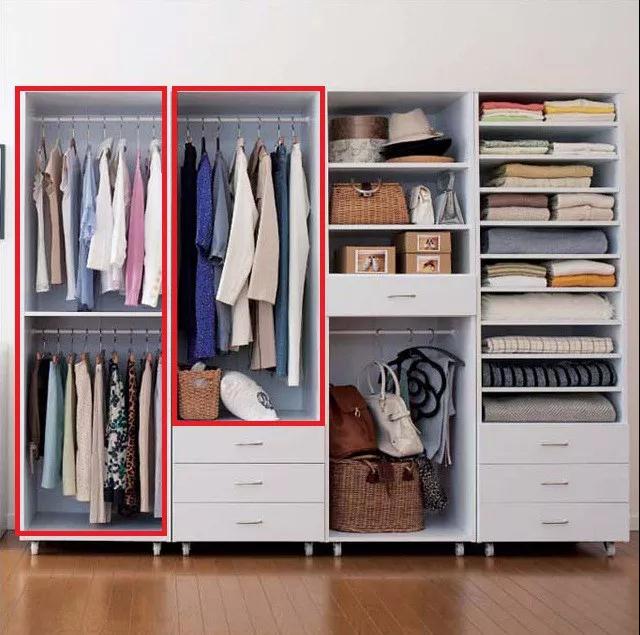 这一部分区域是衣柜合理布局的基本,不同类型的衣物分门别类地收纳好,既能满足需求,使用起来也更方便。