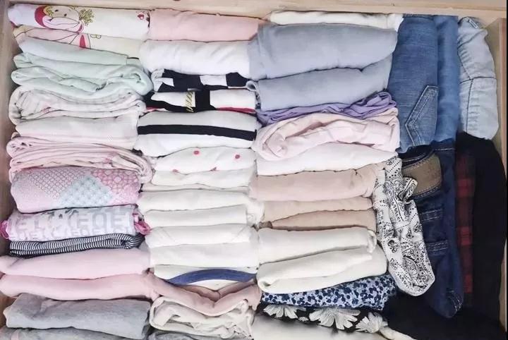 对于无法悬挂起来的衣物,就要折叠起来了,如针织衫;还有一些不必要悬挂的衣物,如短袖,也可以折叠起来。